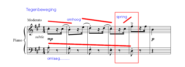 a. Gebruik indien mogelijk een tegenbeweging in de stemmen. Laat de ene stem stijgen als de andere daalt. Ofschoon een parallelle beweging goed kan klinken, zou je die niet vaak moeten gebruiken.